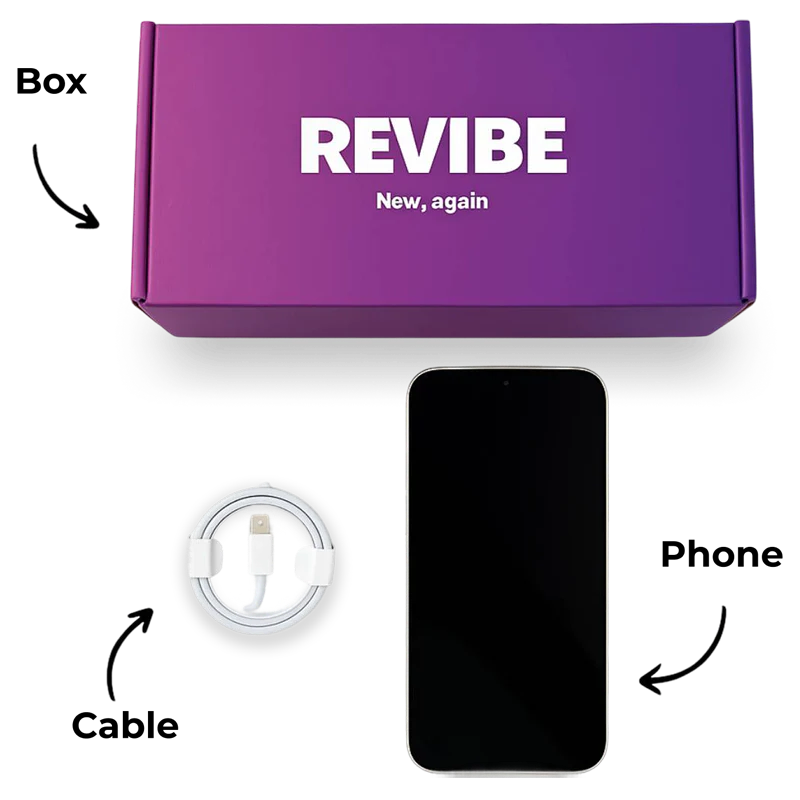 قد يختلف تصميم الصندوق حسب المنتج والطراز. تُسلم الأجهزة المجددة أو المستعملة في عبوات تحمل شعار Revibe، بينما تأتي الأجهزة التي تم شراؤها بحالة "جديدة" فقط مع صندوق الشركة المصنعة الأصلي.